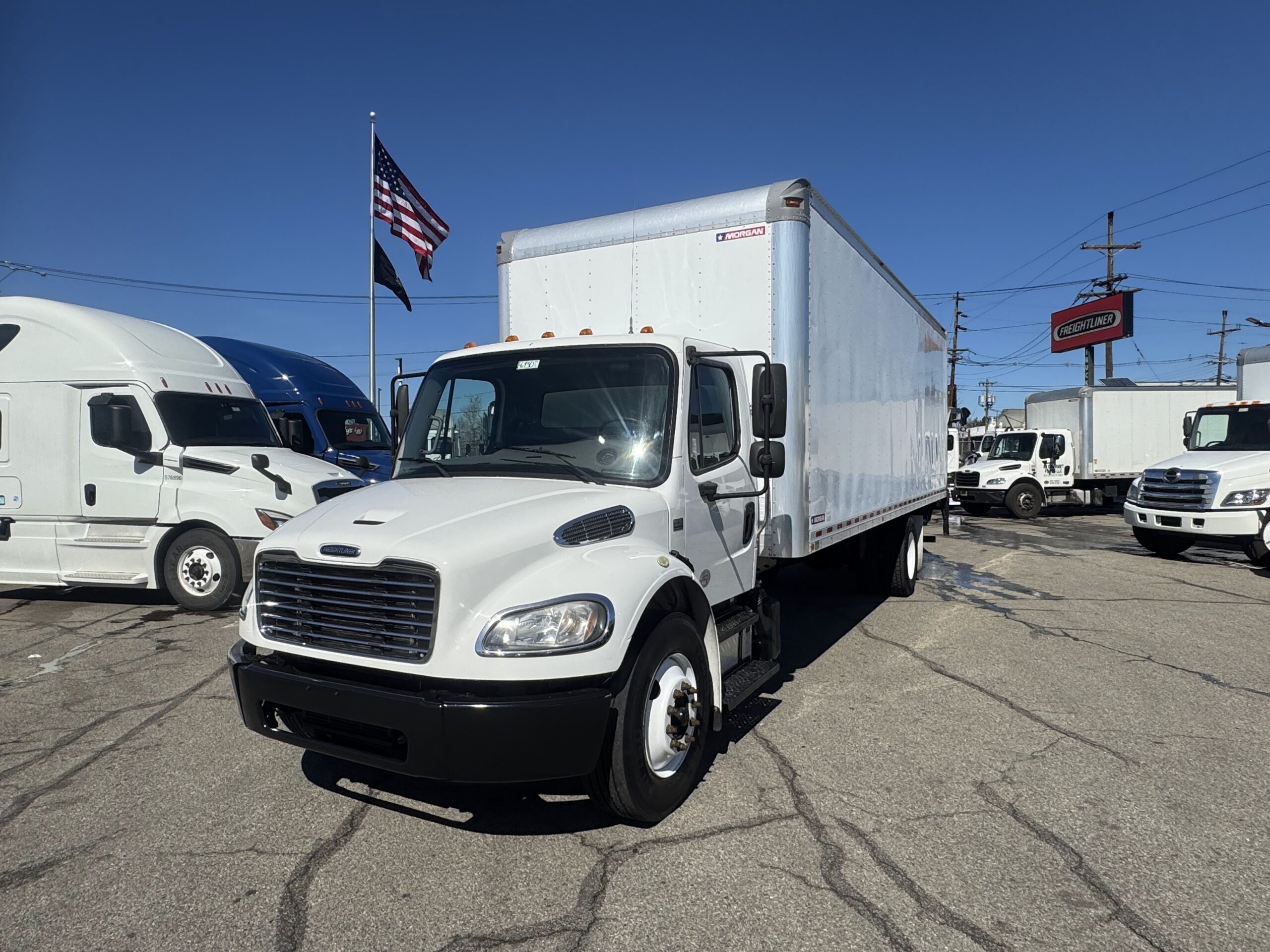 26′ x 97″ H x 102″ W Morgan Van Body, Curbside Door, Air Ride, Aluminum Liftgate, 2 Rows of E Track rails, 12′ 6″ Clearance, All maintenance done by dealer since new, DOT certified and ready for work.